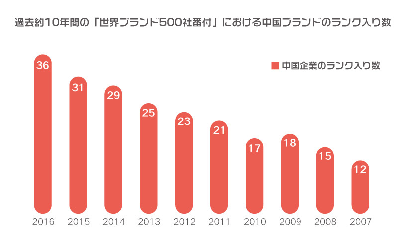 革新が駆動する発展戦略が推進されるのにともない、中國は今、製造大國から創(chuàng)造大國へとモデル転換しつつあり、ますます多くの中國ブランドが海外に進出し、エネルギー、電気通信、製造業(yè)から、メディア、インターネット産業(yè)まで、世界ブランド500社番付に名前を連ねる「中國チーム」も急速に拡大し発展している。