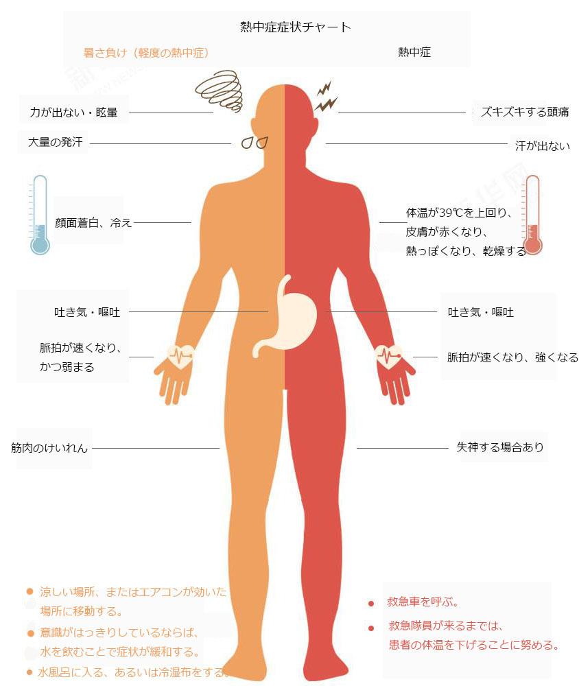 8、眩暈?吐き気?口の渇き?ぼーっとする?息苦しいなどの癥狀が出た時(shí)は、熱中癥の初期癥狀を疑い、ただちに休息をとり、冷たい水を飲んで體溫を下げる。癥狀が重い場合は病院で診察を受けること。(編集KM)