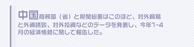 統(tǒng)計(jì)データをみると、1~4月の輸出入の増加ペースは第1四半期(1~3月)に比べてやや低下したが、引き続き高水準(zhǔn)を保った。対外貿(mào)易は引き続き回復(fù)?好転傾向を示し、対外貿(mào)易構(gòu)造が最適化を続け、積極的な変化が増加した。対外貿(mào)易の輸出入には、(1)一般貿(mào)易の輸出入が増加し、割合が上昇した(2)歐州、米國、日本、ASEANなどの市場(chǎng)に対する輸出入が増加した(3)民間企業(yè)の輸出入の占める割合が上昇した、の3つの特徴がみられた。