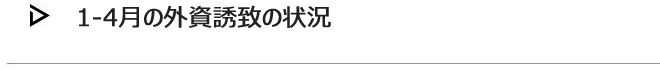 今年1-4月期、中國全國で新たに設(shè)立された外資系企業(yè)は前年同期比17.2%増の9726社、実際に使用された外資の総額は前年同期比0.1%減の2864億1000萬元(約4兆5825億円)だった。4月だけを見ると、中國全國で新たに設(shè)立された外資系企業(yè)は前年同期比42.7%増の3343社、実際に使用された外資の総額は前年同期比4.3%減の599億1000萬元(約9585億円)だった。