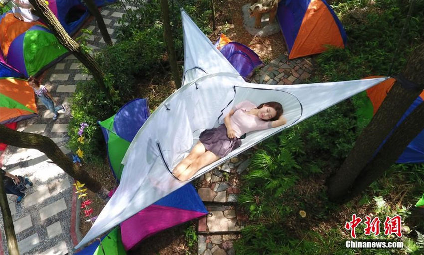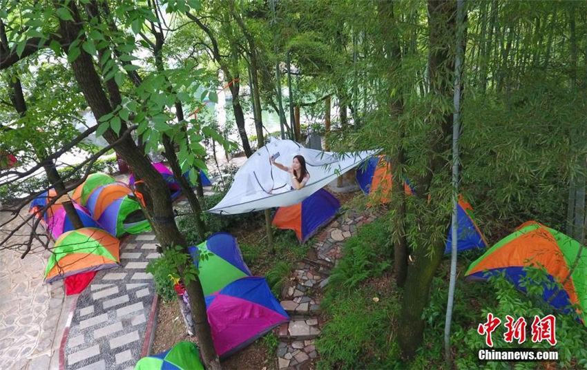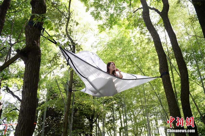 湖南省初の「ツリー?テント」キャンプ場(chǎng)が長沙市石燕湖で2日にオープン??罩肖敲撙敫幸櫎蝮w験しようと、多くの人が訪れた。中國新聞網(wǎng)が報(bào)じた。(編集KN)