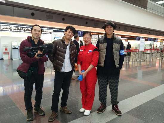 「僕がここに住んでいる理由」の撮影チームと撮影対象者となった東京羽田空港の清掃員?新津春子(郭艶春)さん。