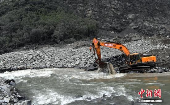 大型機械による現(xiàn)場での救援作業(yè)(6月26日、撮影?安源)