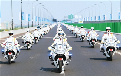 オートバイ護衛(wèi)は外國元首が中國に足を踏み入れた際の第一の儀禮であり、走る「儀仗隊」とも稱される。名実ともに優(yōu)れた護衛(wèi)隊員になるには、通常3~4年の厳しい訓練を要する。外交上の待遇や走行區(qū)間の違いにより、9臺、11臺、19臺、21臺、25臺の5つの護衛(wèi)隊形がある。時速80~140キロで、前後の車両と1.5メートルの距離を保つ。緊急停車距離は10メートルを超えてはならない。