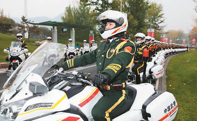 外國元首を送迎する國賓護衛(wèi)隊は白い禮兵服を著て、乳白色のオートバイに乗り、「V」字型をつくり、訪中した外國の貴賓を護衛(wèi)する。彼らは「中華第一騎」と讃えられている。