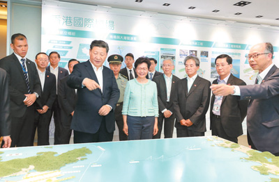 習近平國家主席は1日午前、香港特別行政區(qū)の林鄭月娥行政長官の案內(nèi)の下、香港のランタオ島と広東省珠海市、澳門(マカオ)を結(jié)ぶ海上橋「港珠澳大橋」の香港區(qū)間の建設(shè)工事現(xiàn)場や香港國際空港第3滑走路の建設(shè)狀況を視察した。人民日報が報じた。