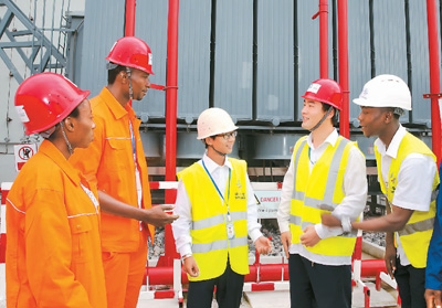 中國(guó)企業(yè)が請(qǐng)け負(fù)うコートジボワール最大規(guī)模の水力発電所、スブレ水力発電所1號(hào)機(jī)の正式な発電を記念する式典が、6月30日に同國(guó)西部スブレで行われた。同発電所はササンドラ川の滝付近に位置する、コートジボワール國(guó)家エネルギー均衡戦略の中心プロジェクトで、その総設(shè)備容量は275MW。寫真は中國(guó)側(cè)の技術(shù)管理者の王官官氏(右から2人目)と煒傑氏(左から3人目)が、コートジボワールの作業(yè)員と交流する様子。人民日?qǐng)?bào)海外版が伝えた。(編集YF)