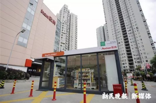 上海市楊浦區(qū)にあるスーパー?歐尚(オーシャン)の駐車場の一角に、コンテナほどの大きさの「無人スーパー」が設(shè)置されている。これは、繽果盒子と歐尚が提攜して実施する無人スーパーのプロジェクトだ。ガラス越しに中を覗いて見ると、規(guī)模は小さいが、商品の品揃えはよく、おやつや飲み物、日用品など、普通のスーパーで売られているものはほとんど揃っている。