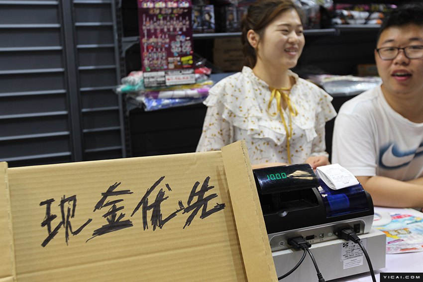 展覧會の様子。會場は人がいっぱいで、通信環(huán)境がよくないため、「支付寶」(アリペイ)や「微信」(WeChat)で支払いができず、多くのブースは「現(xiàn)金優(yōu)先」の看板を出していた。