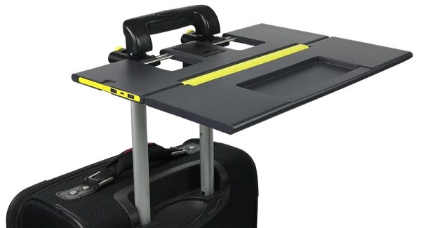 一風(fēng)変わったパソコン用デスクの他に、さらに驚くべき事務(wù)用デスクが存在する。米國のクラウドファンディングサイトは先ごろ世界初の移動可能な軽量型事務(wù)用デスクを発表した。トランクに取り付けることで、あっという間にトランクが仕事場に早変わり。頻繁に出張する人は、さまざまな場でノートPCを使って急ぎの仕事を処理しなければならない。より効率的で人體工學(xué)に基づく設(shè)計の需要を受け、この軽量型事務(wù)用デスクが誕生した。これは取っ手のついているすべてのトランクで利用することができ、取っ手の直徑に応じて調(diào)整し、しっかり固定することで、さまざまなサイズのノートPCに対応できる。