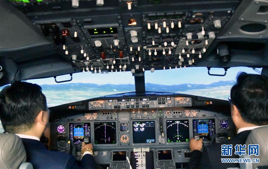 國産初のクラスDフライトシミュレーターの內(nèi)部(7月17日撮影)。