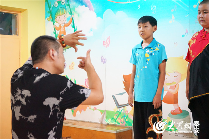 稽古場(chǎng)の舞臺(tái)で相聲を披露する星澤くんと相方。彼らの動(dòng)作や表情についてアドバイスを與えた上で、再度同じ部分を演じさせる師匠。