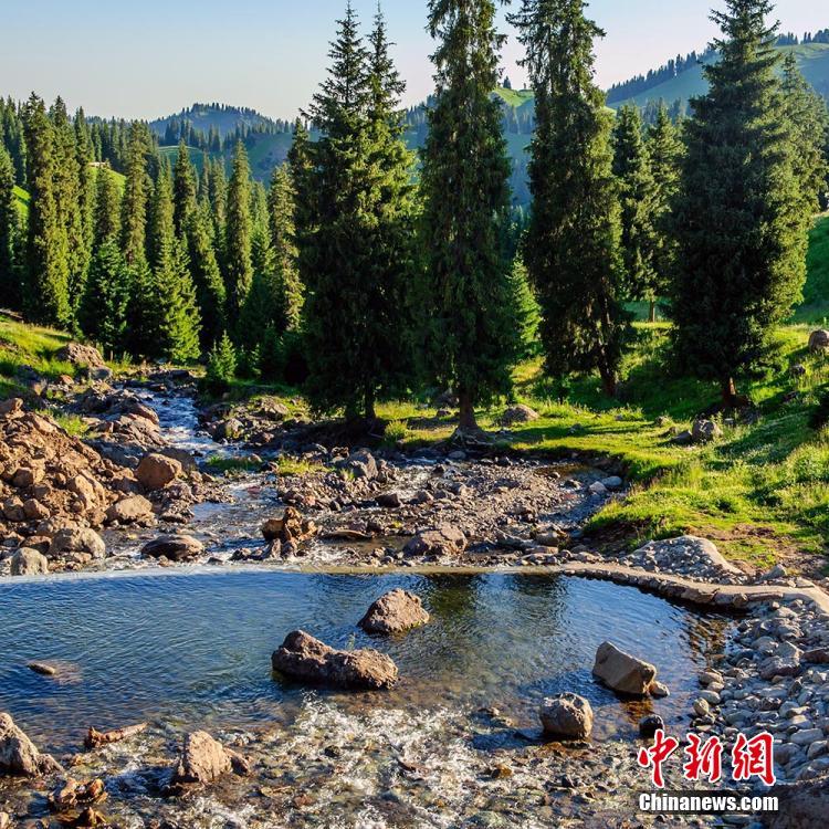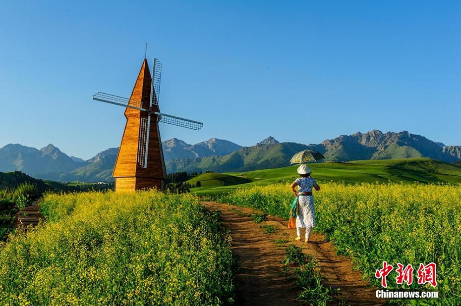 7月に入り新疆維吾爾(ウイグル)自治區(qū)の多くの都市では猛暑となっているものの、同自治區(qū)にある江布拉克景勝地は、さわやかな「避暑モード」に入っている。山一面に緑の草原が広がり、青い空と遠(yuǎn)くに山々が見える景色はまさに絶景。山の間から新戸河が流れ、心地よい濕度で、夏の平均気溫は25度だ。また、66ヘクタールにわたり菜の花と山の花が満開になり、江布拉克の新たな観光スポットとなり、多くの観光客が訪れている。江布拉克は、カザフ語で「聖水の源」を意味し、この景勝地は奇臺県の中心部から45キロ離れた半截溝鎮(zhèn)に位置する國家AAAA級の景勝地、國家森林公園だ。また、中國科學(xué)院によって、保護(hù)の行き屆いたオアシス文化の一つに指定されている。(編集KN)