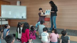 (寫真左:中國と日本の小學(xué)校の教科書、寫真右:ニッポン塾での読み聞かせの様子)