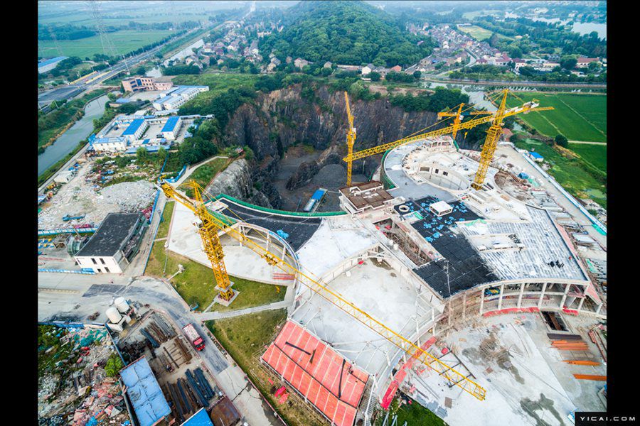 ホテルの主體構造は巖盤に密著して建設される。中間に流線形のガラスカーテンウォールがあり、地表から下に伸びて坑道底面まで続くようになる。