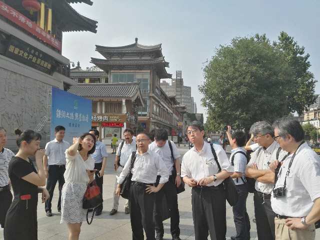 西安大唐西市博物館を訪問、取材する日本の記者団