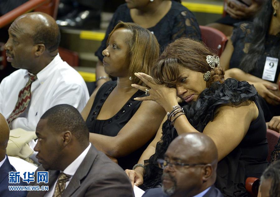 2015年6月17日、米サウスカロライナ州チャールストンの黒人教會(huì)で白人1人が銃を亂射し、9人を殺害した。ヘイトクライムであることが証拠から明らかになった。寫(xiě)真はピンクニー州議員の葬儀でむせび泣く女性。(撮影?殷博古)