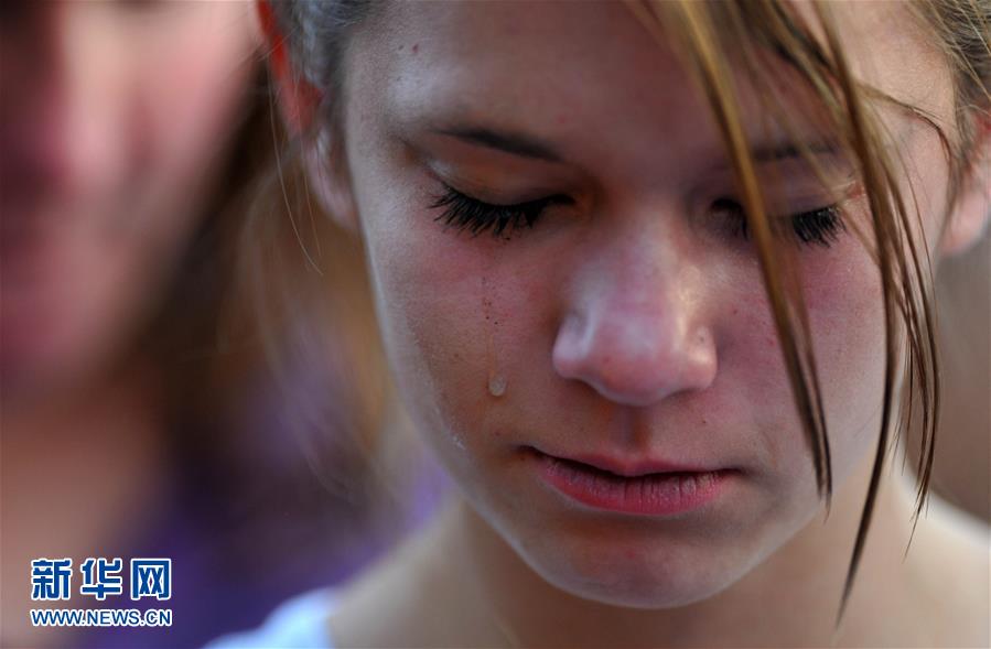 2012年7月20日、米コロラド州の州都デンバー近くの映畫(huà)館で悪質(zhì)な銃亂射事件が発生し、少なくとも14人が死亡し、50人が負(fù)傷した。寫(xiě)真は22日、犠牲者追悼式で涙する女性。(撮影?楊磊)