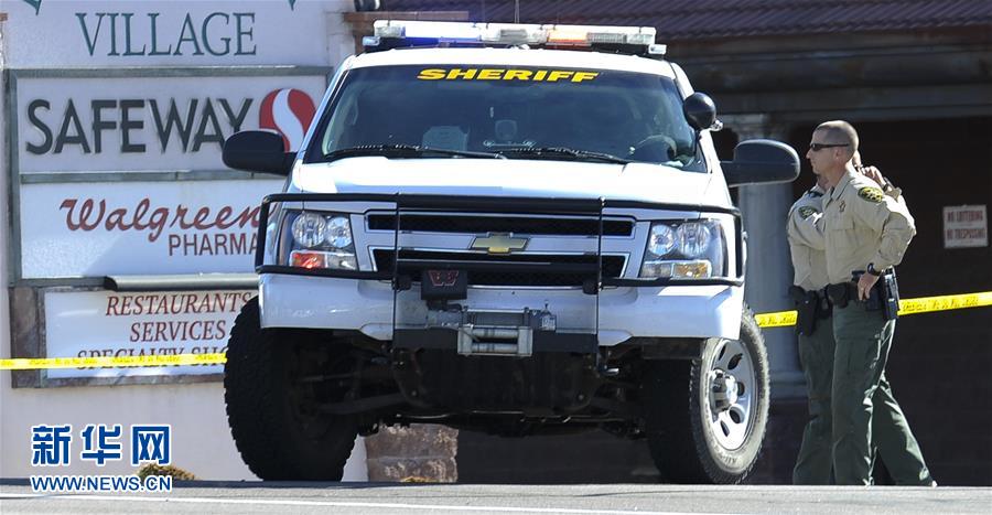 2011年1月8日、米アリゾナ州ツーソンで銃撃事件が発生し、6人が死亡、12人が負(fù)傷した。寫(xiě)真は9日、封鎖された現(xiàn)場(chǎng)でショッピングモールで任務(wù)に當(dāng)たる警察。(撮影?戚恒)