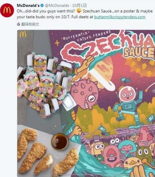 今年7月、マクドナルドはリック?アンド?モーティのプロデューサーに、四川風(fēng)味辛みそを送り、10月1日には、7日にいくつかの店舗で限定発売することを発表した。