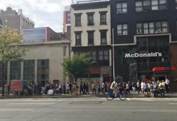 ニューヨーク?マンハッタンのマクドナルドの前で、四川風(fēng)味辛みそを買うために長蛇の列を作る人たち(畫像はBusiness Insiderから)。