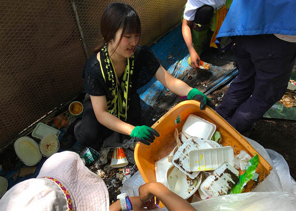 日本での4日間のボランティア活動は、朝早く、雨も続く重労働でしたが、楽しく活動できたのは、流れてくる音楽や運営側(cè)の周到な気遣いがあったからだと思います。ごみ処理ステーションに立ち寄る観客も嫌な顔1つせず分別に協(xié)力してくれる、ボランティアも観客も楽しみながら環(huán)境問題について考え、環(huán)境保護に貢獻できる活動でした。殘された1年7ヶ月間の協(xié)力隊活動は、中國の音楽イベントにおいて環(huán)境保全の取り組みを?qū)g施することが目標となりました。その場にいる全員が、楽しく環(huán)境問題を考えるきっかけづくりを目指して、日々奮闘して參ります。