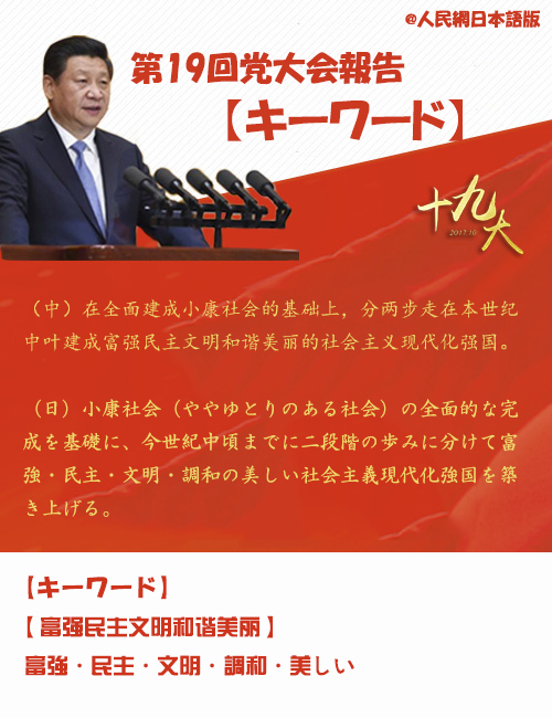 北京市の人民大會堂大ホールで現(xiàn)地時間18日午前9時より開幕した中國共産黨第19回全國代表大會(第19回黨大會)。同日の開幕式では習(xí)近平総書記が第18期中央委員會を代表して報告を行った。ここでは報告で言及されたキーワードについて學(xué)んでみよう。