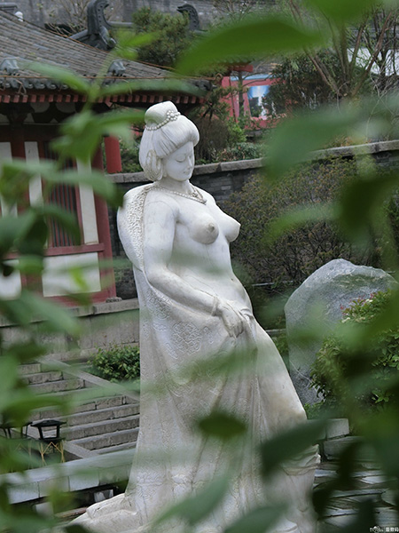 華清池の敷地內(nèi)に入ると、肉感的な楊貴妃の像が出迎えてくれます。