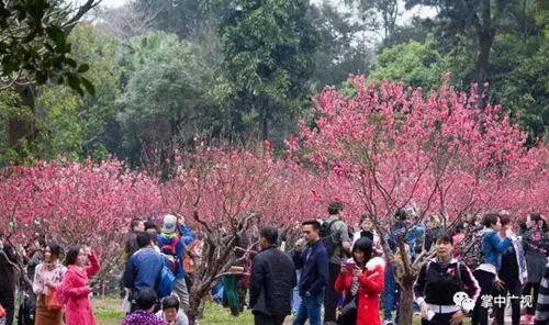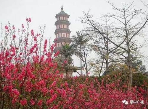 広州市番禺區(qū)の蓮花山景勝地できれいな花を咲かせる桃の木