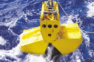 ロボットアームで深海地質(zhì)サンプルをつかみ、引き揚(yáng)げる様子(11月30日撮影)。