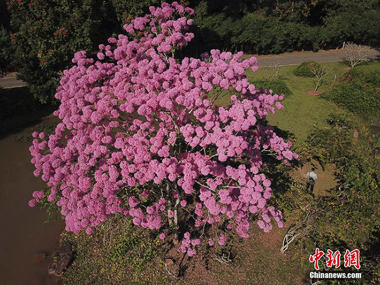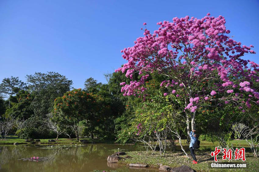 中國科學(xué)院西雙版納(シーサンパンナ)熱帯植物園で20日、パウダルコの花が満開となった。中國新聞網(wǎng)が報じた。