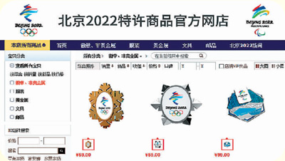 同ショップのページを開くと、雪や氷をちらした青い畫面を背景に、「冬夢」と「飛躍」の両エンブレムが並ぶ。16日午後には、「北京2022年冬季五輪エンブレム発表記念バッジ」が同ショップの商品第一弾としてオンライン予約受付を開始した。當(dāng)日夜までにバッジ?非貴金屬、アパレル、貴金屬、文房具、郵便グッズの5ジャンル50數(shù)種類の商品が全面的に予約受付を開始した。