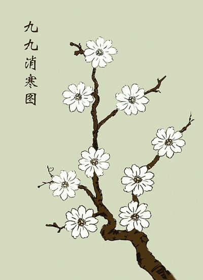 消寒図の風(fēng)習(xí)は、中國人の「數(shù)九」の習(xí)慣と関係している。毎年冬至の前になると消寒図を用意する。文字だけのバージョンと梅の花のバージョンがあり、冬至の日から81日間、消寒図に毎日一筆ずつ書き加えていく。消寒図が完成する頃には雪も溶け、暖かい風(fēng)が吹き、大地に春が到來する。