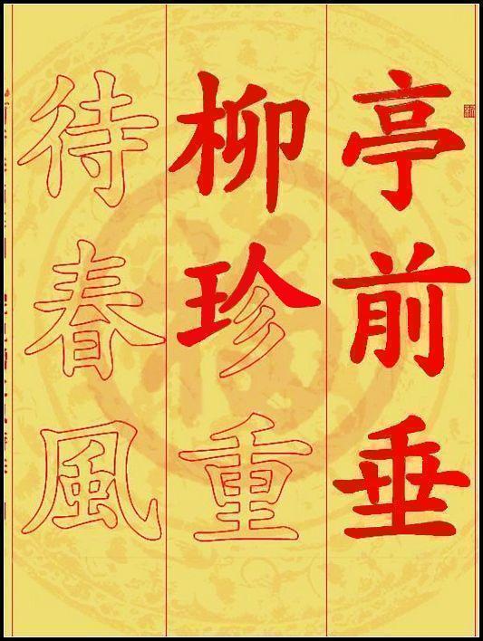 この「九九消寒図」は計3枚から成り、うち2枚が梅の花バージョン。一つは扇型で、もう一つは縦長となっており、「宋人折梅花」のデザインを元に作られており、81枚の花弁がとても美しい。最後の1枚は文字のバージョンで「亭前垂柳珍重待春風(fēng)」という文字が書かれており、清代の皇室で流行したデザインで、故宮の養(yǎng)心殿にかけられていたのもこのデザインとなる。すべて9畫から成る9つの文字で、朱砂で毎日赤く染めると、ちょうど81日となる。