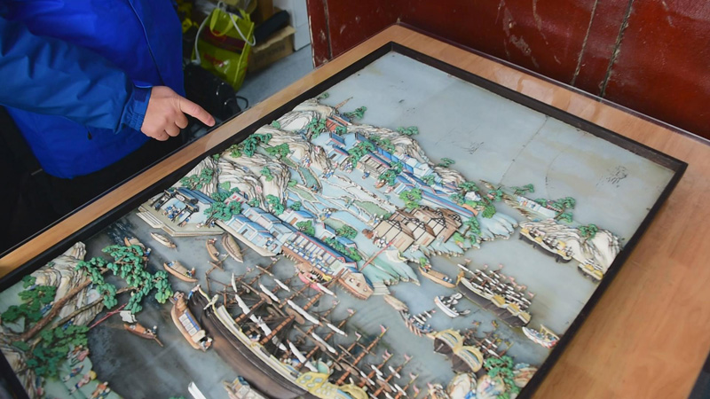 象牙に色を染めて作り上げられた工蕓品には、當(dāng)時(shí)の広東地區(qū)の賑やかな海上貿(mào)易の様子が詳しく描かれている。この作品にはなんとアメリカ大陸の染料が使われていることが分析で判明している。