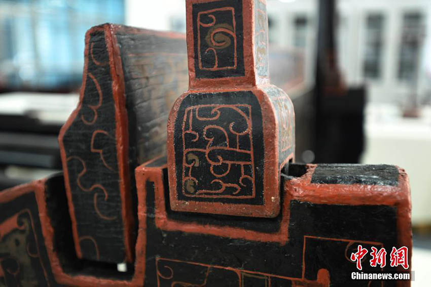 漆塗りベッドに描かれた模様(1月8日、撮影?安源)。