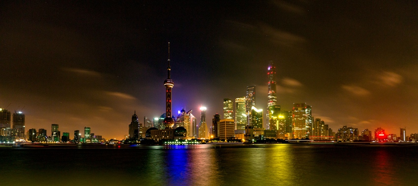 「バンドから撮影した浦東の金融街の様子です。肉眼では真っ暗なのですがカメラの長(zhǎng)時(shí)間露光を使って撮影しました。」