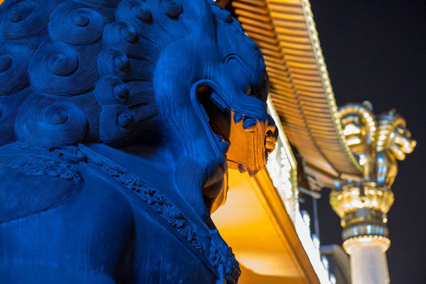 「靜安寺の獅子像です。お寺の反対側(cè)にLED広告があり、運(yùn)良く獅子像が青く照らされるようなタイミングで撮影することができました。青色と金色で古剎と最先端の経済を表現(xiàn)しました。」