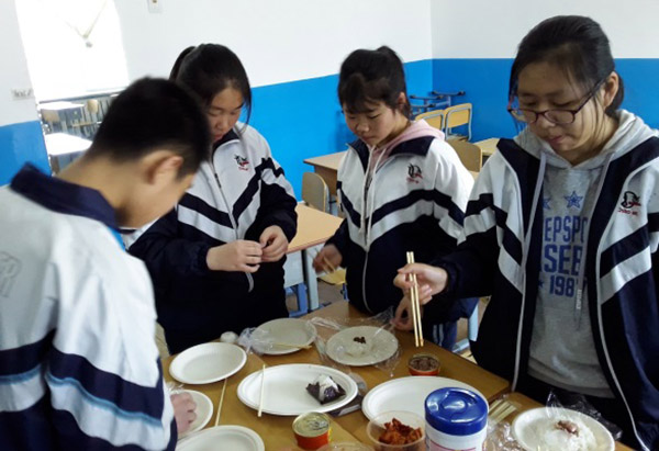 それで、この記憶を胸にしまい、クラブ員が入れ替わった第二學(xué)期では、生徒の興味をよく観察しました。こうやって、新しいクラブ員は食べることに興味があるのに気付きました。彼らが中國のラーメンと日本のラーメンの違いについて話しているのを聞いたとき、自分たちで実際に確かめて、それをまとめたらどうかと提案しました。このような経緯で、軽食を食べて、その感想をクラブ新聞に書くという活動が始まりました。自分で試食したものを書くことは、平時の授業(yè)とは違う角度から作文を書くことができます。それは、書く練習(xí)としても、役に立つでしょう。これまで、ラーメン、おにぎり、お好み焼きやチョコバナナといった4つの軽食を試食してきました。