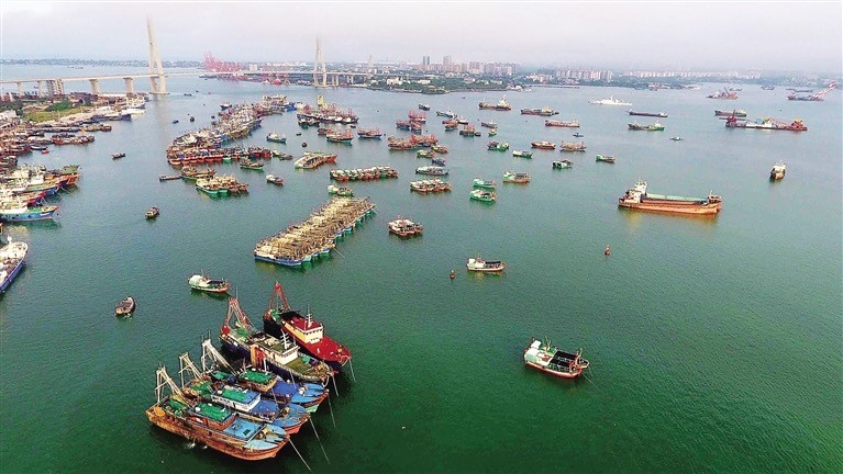 海南省は海洋経済の発展で、獨(dú)自の地理的?資源的優(yōu)位性を持つ。寫真は繁忙を極める儋州白馬井中心漁港。(撮影?陳元才)