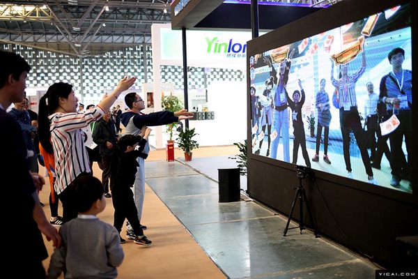 中國(guó)(上海)國(guó)際技術(shù)輸出入交易會(huì)(上交會(huì))で拡張現(xiàn)実(AR)の世界を體験する來(lái)場(chǎng)者。(寫(xiě)真は第一財(cái)経より)