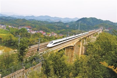 江西省上饒市內(nèi)の合福高速鉄道柏路田特大橋を走行する高速列車(寫真提供?中國鉄路総公司公式サイト)