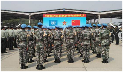 中國初のPKOヘリコプター分隊の出征式(寫真は中國軍網(wǎng)より)
