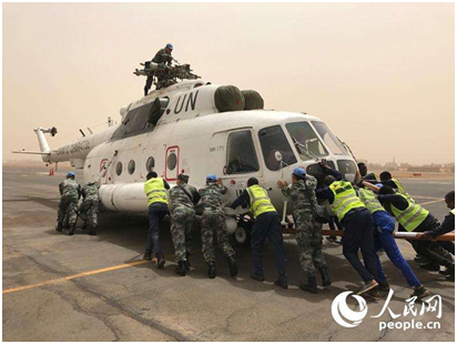 報道によると、今回の任務は國連のヘリコプターが攻撃を受けたことのあるスーダン反政府武裝勢力の支配地域を通過する必要があった。中國ヘリコプター分隊は計150時間近く飛行し、物資40トン近く、人員800人近くを輸送した。