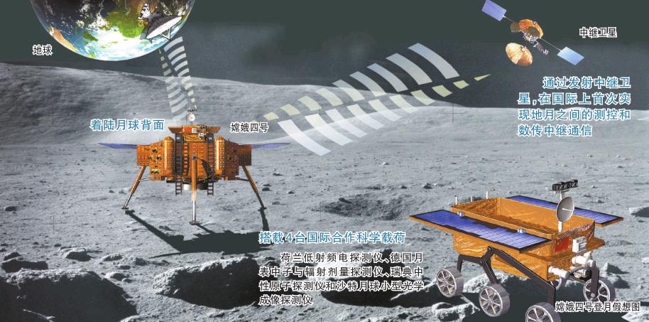 中継衛(wèi)星の軌道上での試験が完了後、中國は今年下半期に嫦娥4號を打ち上げ、月の南極付近にあるエイトケン盆地に著陸させる。