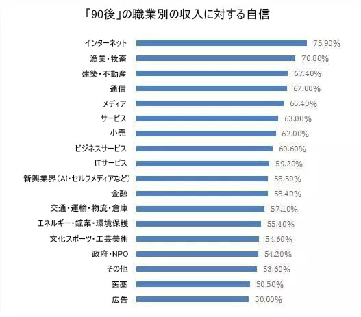 「90後」は、業(yè)界に関わらず、いずれも収入に対する自信を抱いている。