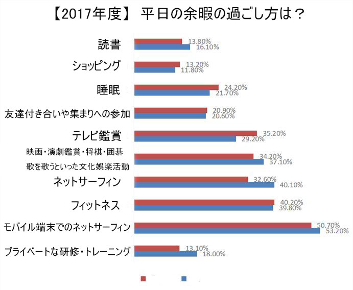 生活に対する満足度や幸福感が高いことについて、生活の質(zhì)に対して明確なニーズを抱いている大學(xué)生は、自分の望むライフスタイルを送るという目的に向けて、自分自身を高め、「充電」し続ける努力を怠っていない。同報告によると、大學(xué)生の1日の余暇時間について、「3-4時間」が最も多く、「3-5時間」の余暇時間を確保している大學(xué)生の割合は、他の世代よりかなり高かった。