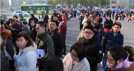 江蘇省淮安市で、子供の就學(xué)登録のために列に並ぶ保護(hù)者(畫像提供?人民視覚)。