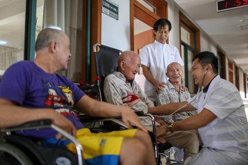 ??谑肖摔ⅳ敫啐h者施設(shè)で、醫(yī)療サービスを受ける高齢者(畫像提供?人民視覚)。