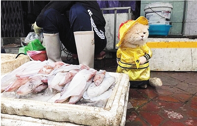 中國の皇帝が著るような黃色い服を著た可愛らしいネコが、ベトナムのある魚売り場で店番をする姿が人々の注目を集めている。この3歳になるネコは人懐っこく、時にはポーズを決めて寫真撮影に応じてくれるという。